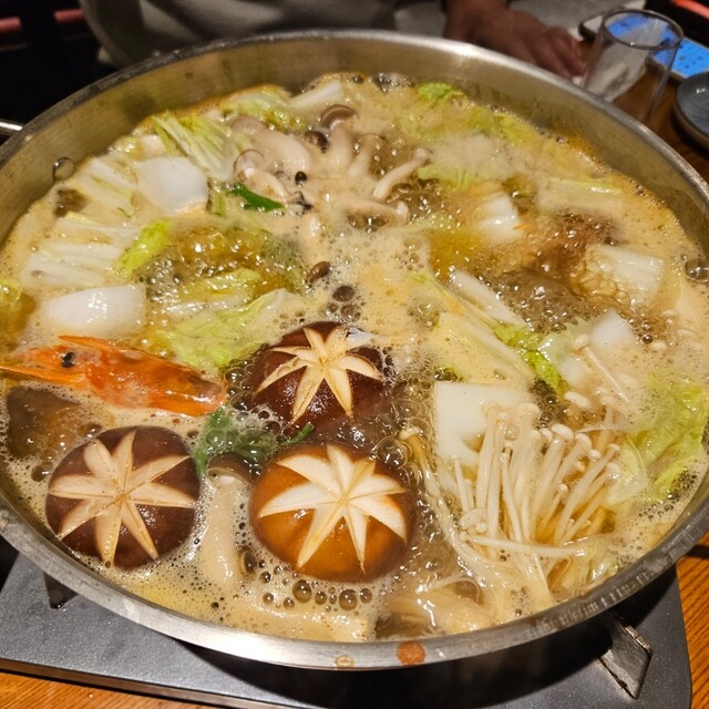 濃厚な海老味噌たっぷりのお鍋に