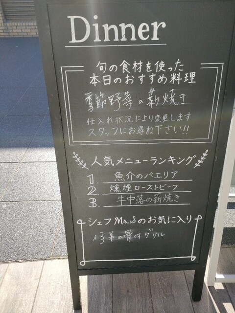 | 空間・設備 | オシャレな空間、落ち着いた空間、カウンター席あり、オープンテラスあり、無料Wi-Fiあり、車椅子で入店可 |