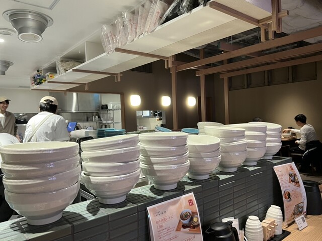 店内は清潔感のある広々としたシンプル空間、