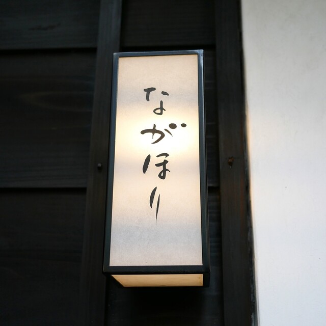 看板表札等は無く、二階部分のすり硝子の窓に「ながほり」と書いて有りますが、