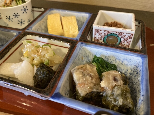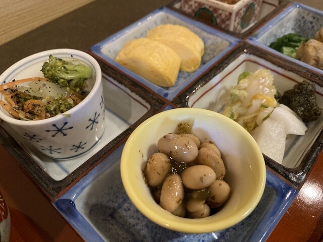 ランチの「お弁当」をいただいた どのおかずも本当に美味しくてまた食べたい!ほうじ茶もおいしかった。ランチ頼んだら+100円でポットで頼めると確か書いてたので次は頼んでみたい