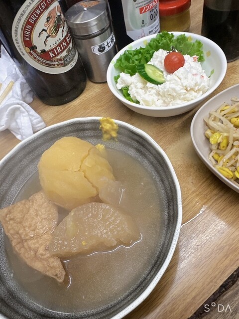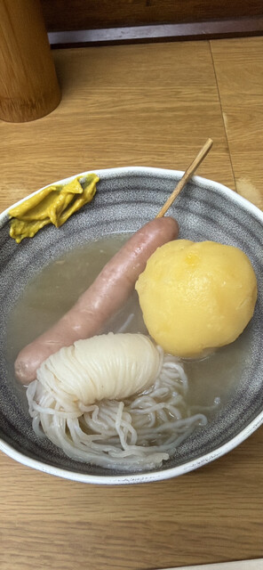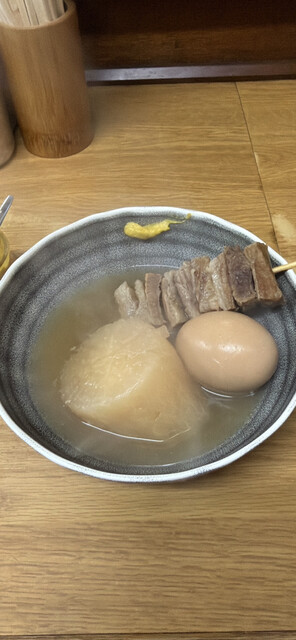 お酒を飲まない私には並んでまでいただくというほどの感激度はなかったです。カウンターのみのおでんをメインに出してるお店。飲む方がほとんどで回転率は悪いですのでソリャ行列になりますね。味というよりおでんで...