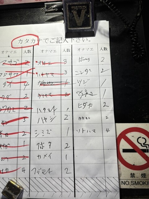 開店前には名前を記入...
