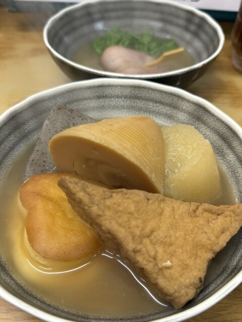 友人3人と来店 久々で寒くなったのか前は夏行ったが空いていて、この日は7時半に行ったが9組待ち! まずは筋2本大根卵 私の定番 そこからたけのこ つくね ごぼ天 ねぎまが売り切れ残念だった 私の友だち...