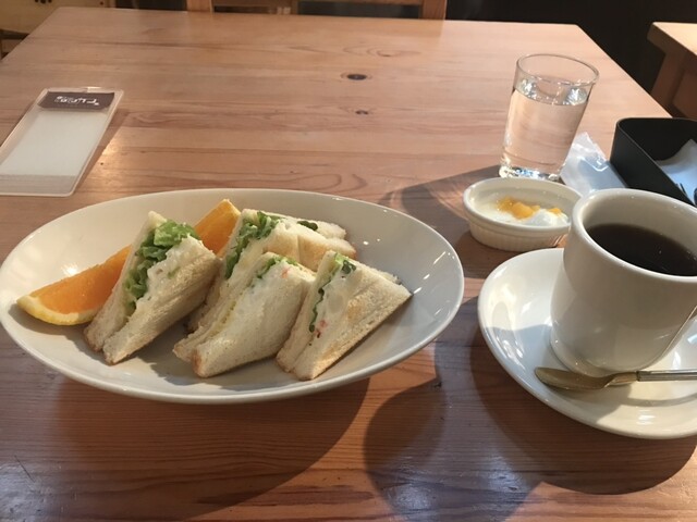 料理・味 ホットサンドイッチと果物、ヨーグルト、コーヒーのセットを頂きました ホットサンドイッチはポテトサラダが入っていて焼いた食パンとの相性が良いです パンは6枚切りか8枚... 詳細を見る