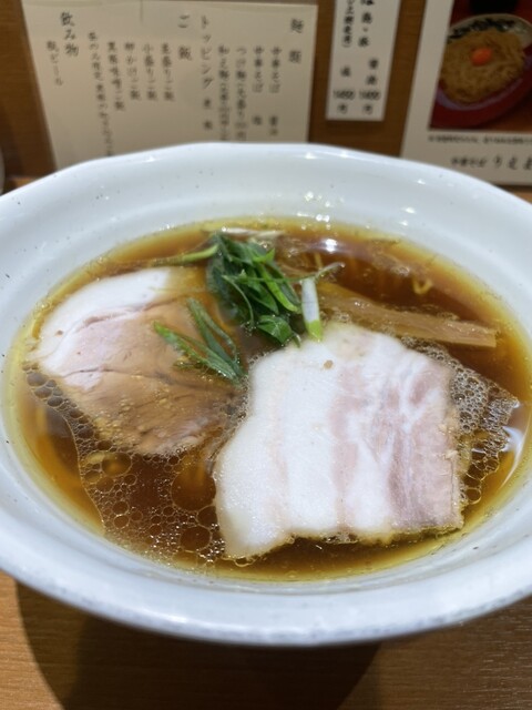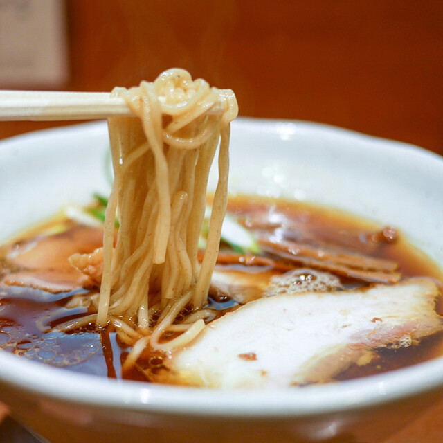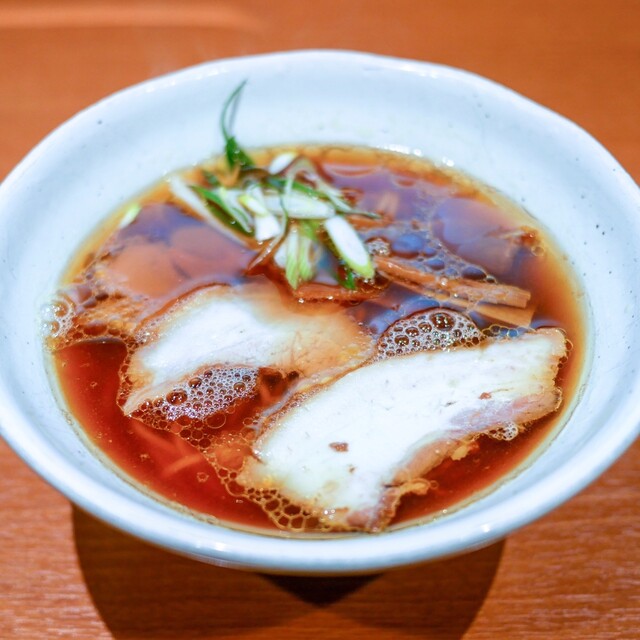 目の前に置かれた丼は、余計な装飾が削ぎ落とされた美しさがありました。澄んだ醤油スープの表面で、香味油が穏やかに光を反射しており、食べる前から質の高さを感じました。