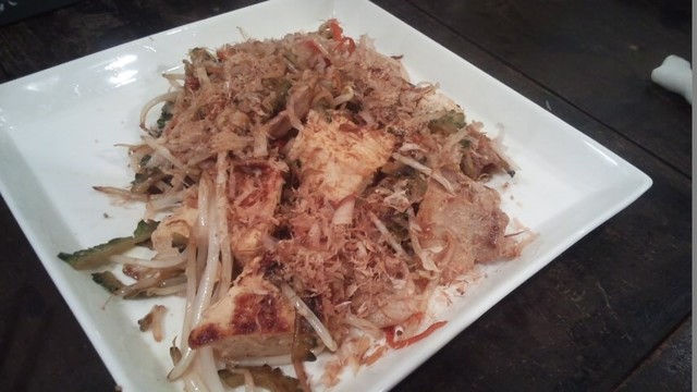 麩チャンプルはボリュームあるけど、麩と野菜なので罪悪感なく頂けるメニュー