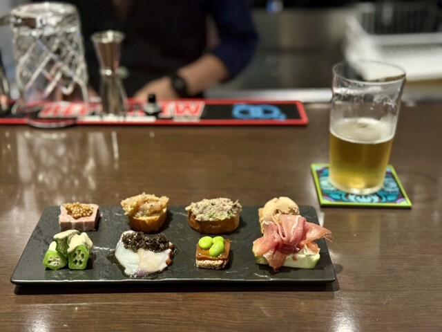 谷町六丁目近くの長堀通沿いで早い時間からオープンされてるお店です。クラフトビールは3タップながら、イタリアン出身のオーナーシェフが自信をもって提供する料理との組み合わせに力を入れておられ、単なるビアバーとは一線を画します。前菜盛り合わせは完成度が高く、ビール好きの方ならそのこだわりに共感されるはず。内装はやや簡素で高級といった雰囲気ではありませんが、店主の信念がしっかりと感じられる一軒です。