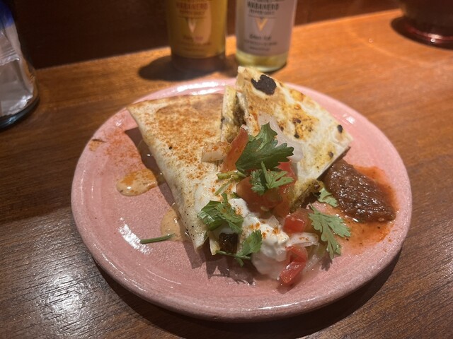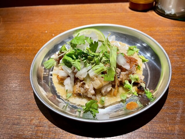 具材の美味さ際立つタコスはマジ絶品。トルティーヤの香りも際立ちます。これまた絶品のケサティージャに、ハラペーニョ焼きそばなんて変わり種も。大将の雰囲気&接客も良い感じだし、〆にテキーラ飲みながらの絶品タコスなら間違いないお店ね!?
