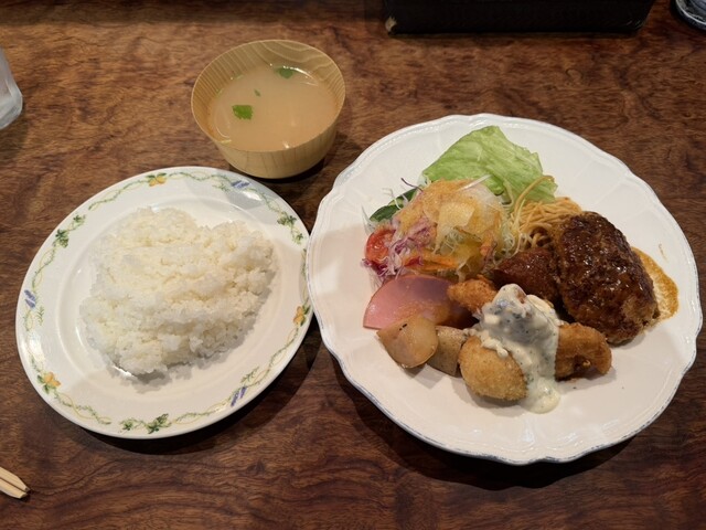 ◎Aランチ(ハンバーグ・魚フライ・海老フライ・クリームコロッケ・ポークカツ) @グリルポッケ 〒大阪府大阪市生野区桃谷2-28-17 最寄り駅:桃谷駅 〜徒歩7分 定休日:... 詳細を見る