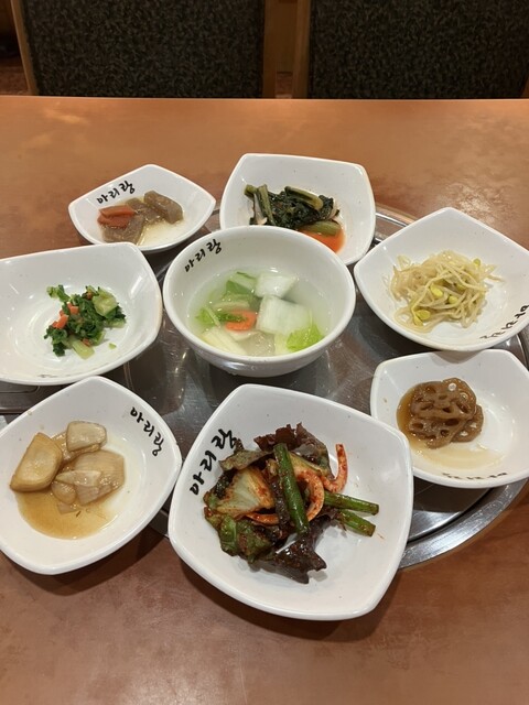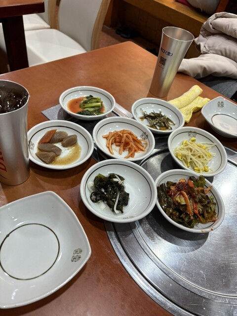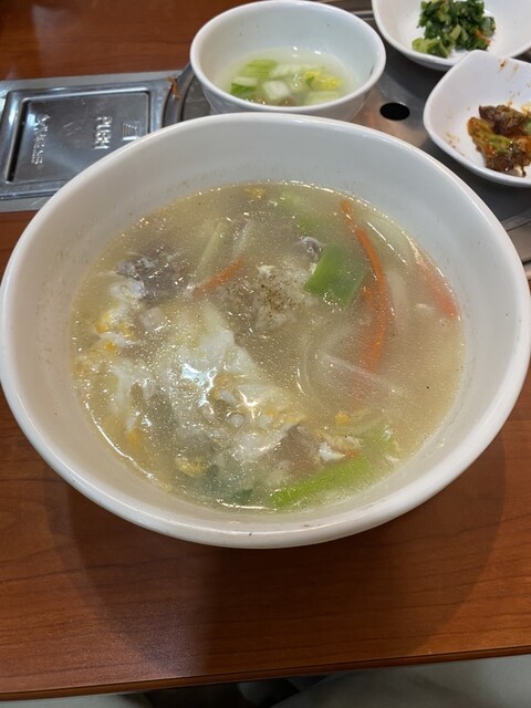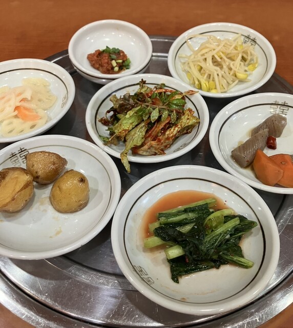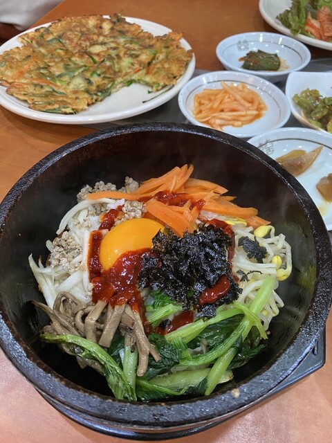 ランチで利用しました。3人でお伺いしたのですが、注文したのはキンパ定食(1000円+税)、味噌チゲ定食(1000+税)、テールスープ定食(1300+税)、アリランチヂミ(1000+税)、キムチ盛り合わ...