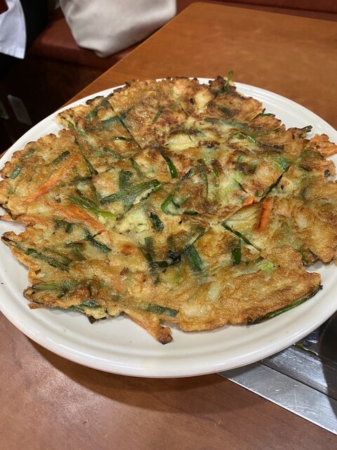 こちらの海鮮チヂミは、外はカリッと中はもちもちとした食感で、ほどよい塩気が効いていて美味しかったです。海鮮の旨味もしっかり感じられ、タレとの相性も良かったです。特別に感動するほどではありませんが、十分...