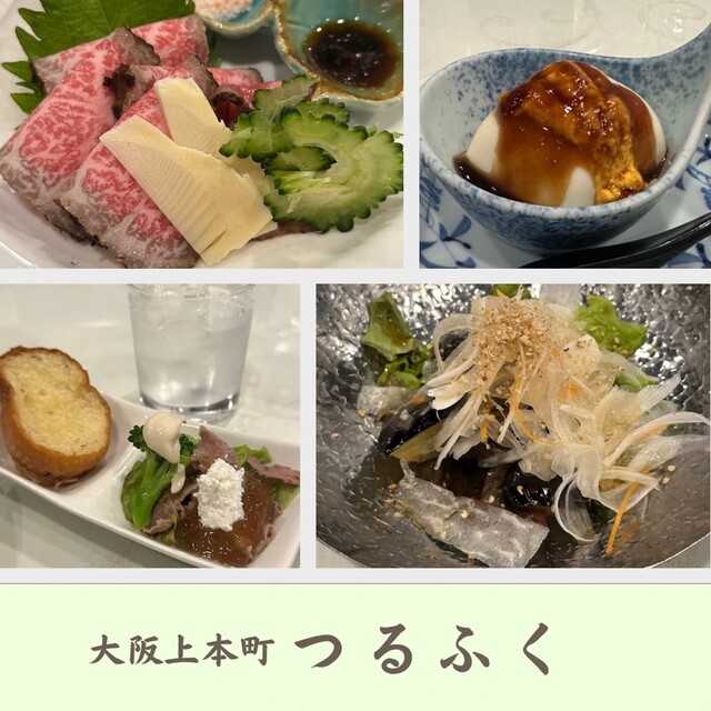 神戸ビーフと季節の食材を使ったお料理を気軽に楽しめる【つるふく】。一頭買いする神戸ビーフは雌牛のみを仕入れており、枝肉を熟成した珍しいお肉を多彩なメニューでご堪能いただけます。また旬の素材を用いた身体に優しい一品もおすすめ。すっぽんもご用意可能ですので、ご予約時にお申し付けください◎アットホームで落ち着いた店内は、デートから接待まで幅広いシーンに対応。お好みの一杯片手に、素敵なひとときをどうぞ。