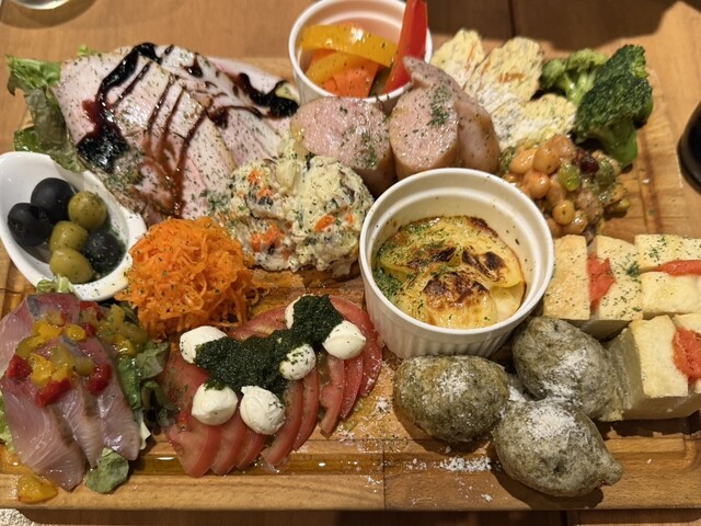 【2025年5月26日訪問】 まずは、大皿で運ばれてくる前菜盛り合わせにわくわく。野菜のマリネや生ハム、キッシュなど、一品ずつ丁寧につくられていて、どれから手をつけるか迷って... 詳細を見る