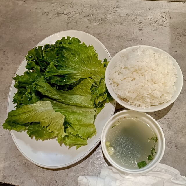 〇ご飯大盛に肉乗せ→チシャ