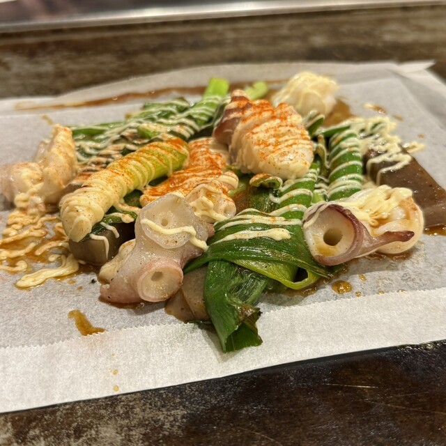 そばロール(シングル)850円+えび280円 お好み焼き(大阪焼ベース) 650円+明太子250円+じゃがいも150円 ティーソーダ 350円 予約無しで行ってキョトンとされてカウンターだったらと案内してもらいました。(その後予約の方どんどん来て満席に) メニューありすぎてどれにする... 詳細を見る