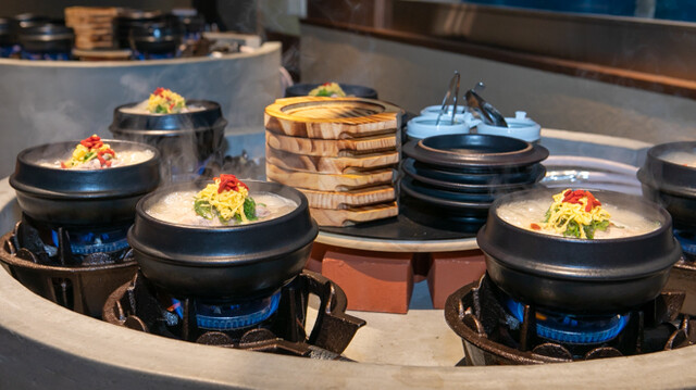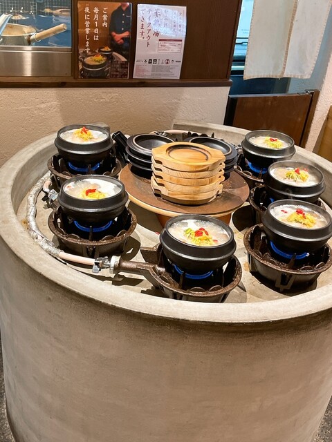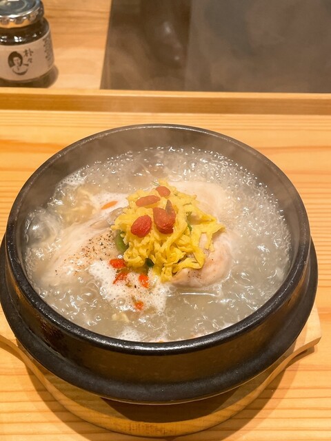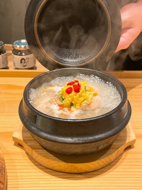 ”蔘鷄湯をひとりでも多くのお客様に知ってもらい、食べて頂く”という想いから誕生した【蔘鷄湯人ルはなれ】。有名韓国料理店『韓味一』の女将から引き継いだ蔘鷄湯に7種類の自家製パンチャンが付いた「蔘鶏湯御膳」をご提供いたします。日本では珍しい生マッコリ「ボクスンドガ」など、お供にぴったりなお酒も豊富。本場さながらのスタイリッシュな店内にて、グツグツと煮立つ様子を目の前にご堪能ください。