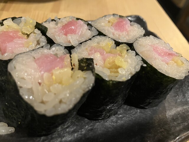 本マグロ中トロや鉄火巻付き。 鮨を楽しむ厳選握り八貫と、贅沢盛りだくさんの8品コースとなっております。