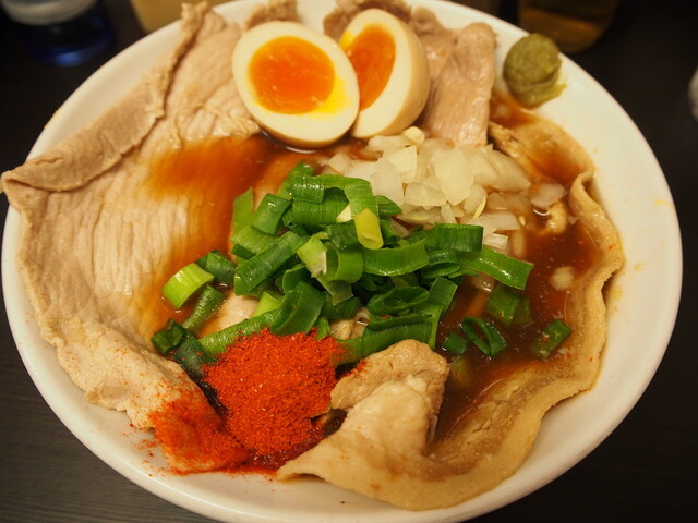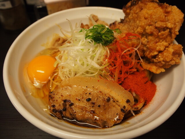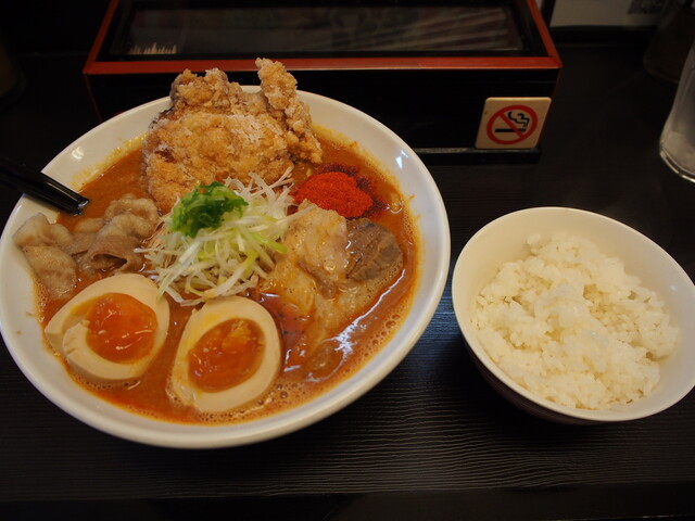 全国ご当地ラーメンリレー第5弾 辛口肉ソバひるドラ日本橋店さん(╹◡╹)入る時は空いてましたが、帰る時には混んできました\(//∇//)\4/2(土)→4/8(金)までの週替わり限定「肉盛り」豚骨魚介肉ソバ1450円をいただきました(・∀・)肉は厚切りチャーシュー、豚バラチャーシュー、からあげが入ってて、めっちゃボリュームあって美味しかったです╰(*´︶`*)╯♡特にからあげはめっちゃ大きくて、食...