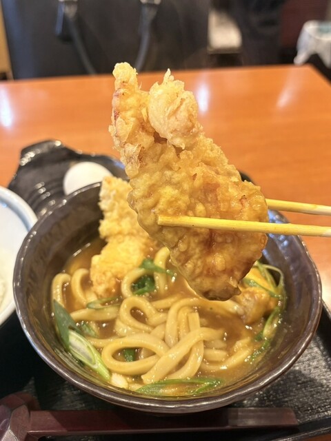 今回は「ひやかけ」と「釜揚げうどん」をそれぞれ注文しました。 ひやかけはコシがかなり強く、噛むたびに弾力を感じる印象的な麺。冷たい出汁が本当に素晴らしく、いりこの旨味とキレが絶妙に調和していて、思わず飲み干してしまいました。追加トッピングのとり天と半熟たまご天も、揚げたてサクサクで中はしっとり... 詳細を見る