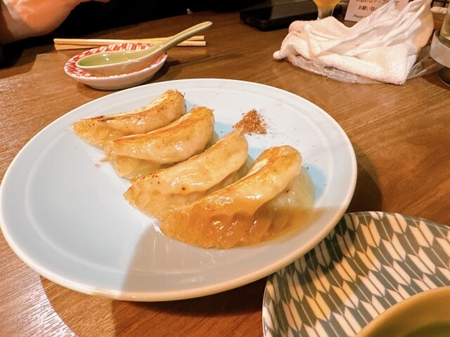 餃子のメニューが焼き、蒸し、揚げで十数種あり豊富。ちょっと分かりにくいですが、餃子は1個から注文でき、1個あたりの値段がメニューに記載されています。