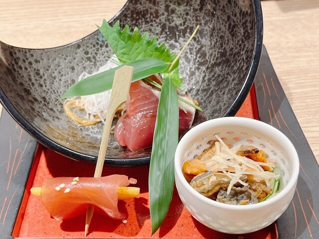前菜三種盛り合わせから始まり、造りが2品と続き、素材の鮮度の良さをしっかり感じられます。
