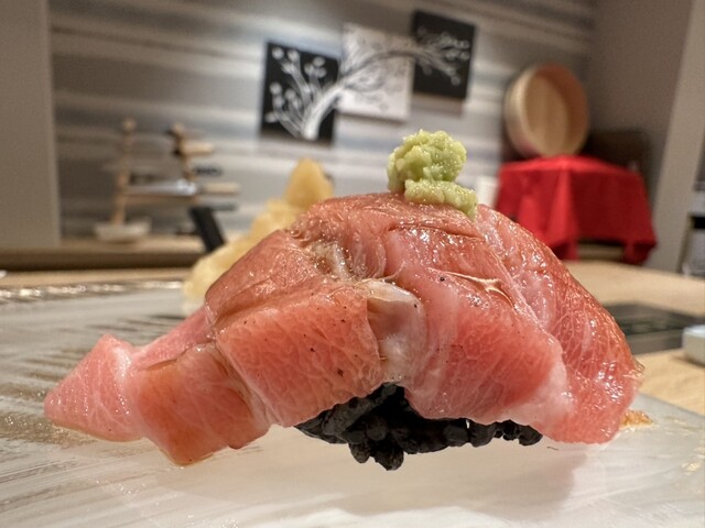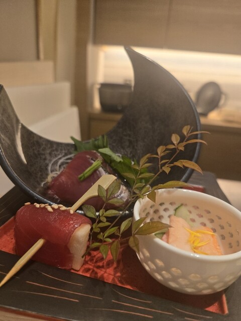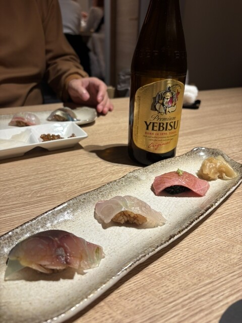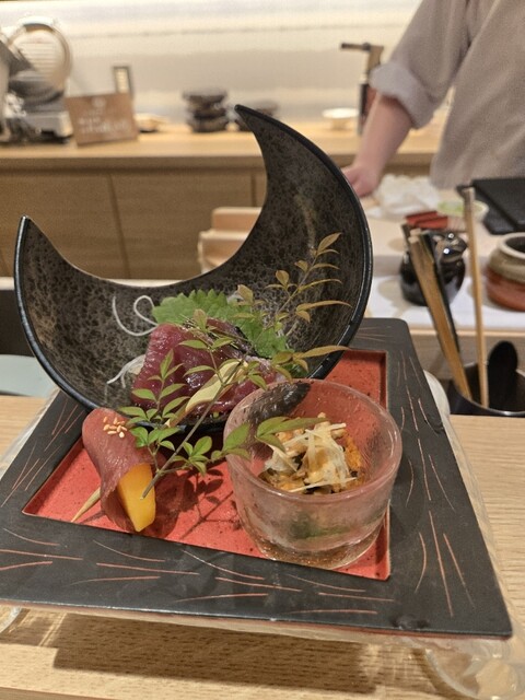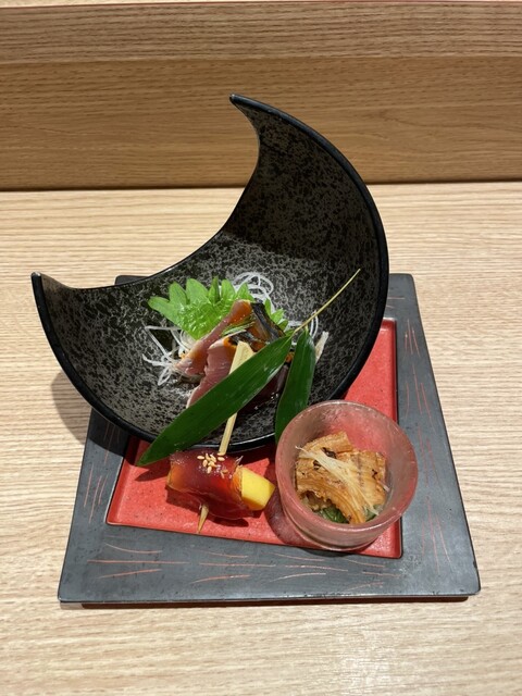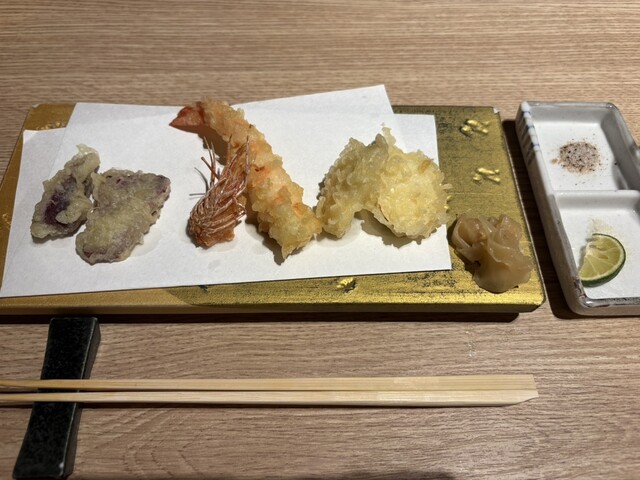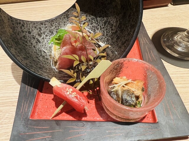 新今宮駅すぐ、去年8月にオープンした飲食店ビルの中にある鮨と天ぷらのお店。カウンターとテーブル席があり、スタイリッシュな雰囲気で提供スピードも良く、品数が多いのが魅力です。