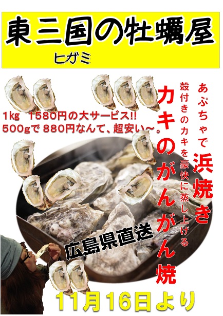 広島県直送新鮮なカキのがんがん焼。殻付きカキ (by お店)