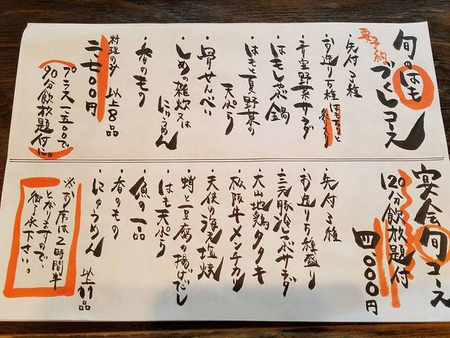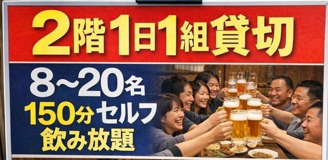 | サービス | 2時間半以上の宴会可、お祝い・サプライズ可、テイクアウト |
