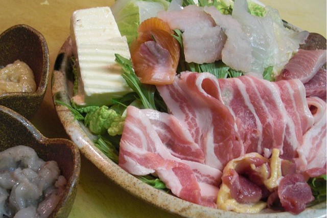 2月、島根県直送 天然猪ボタン鍋 (by お店)