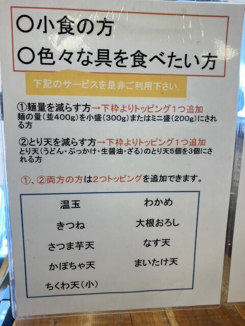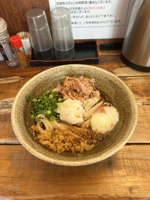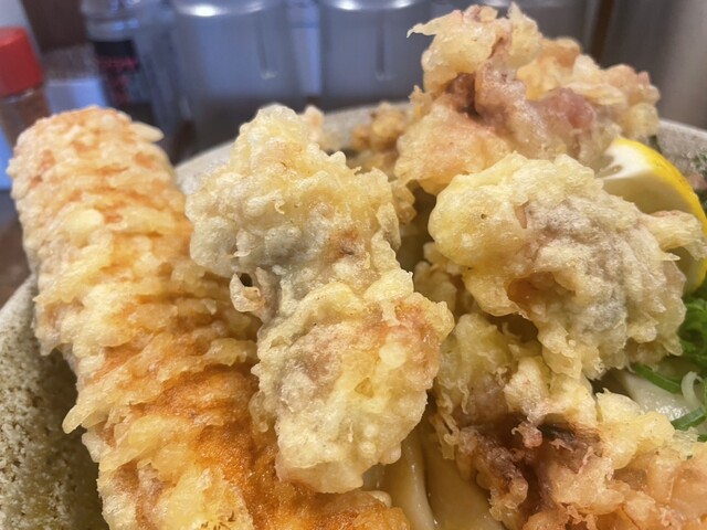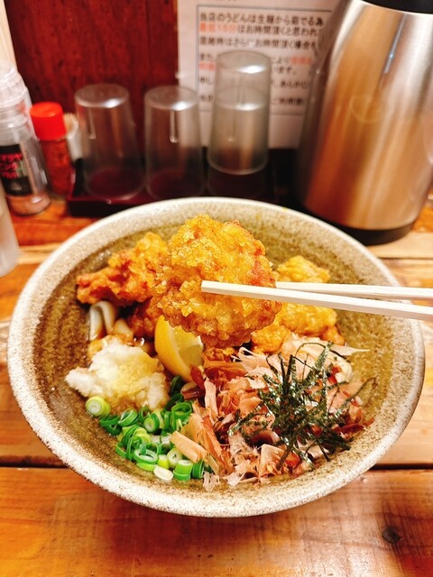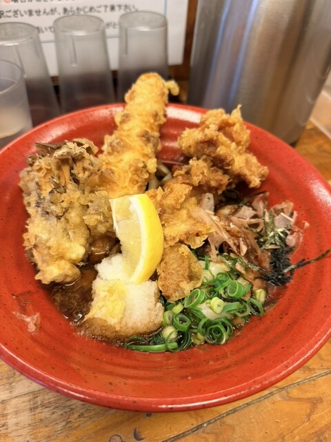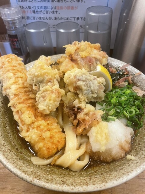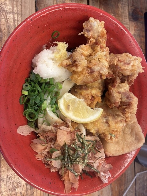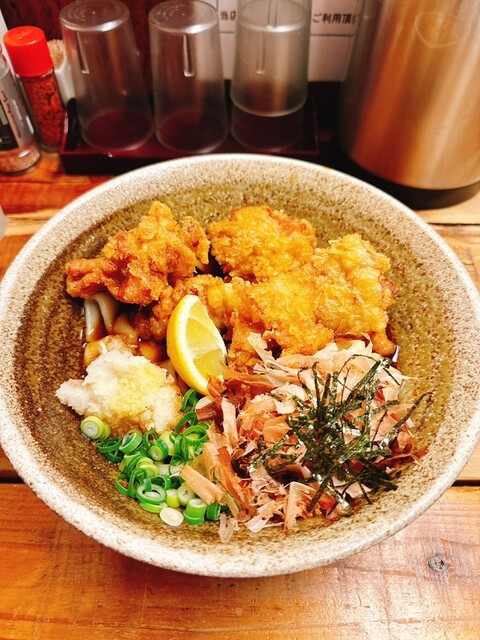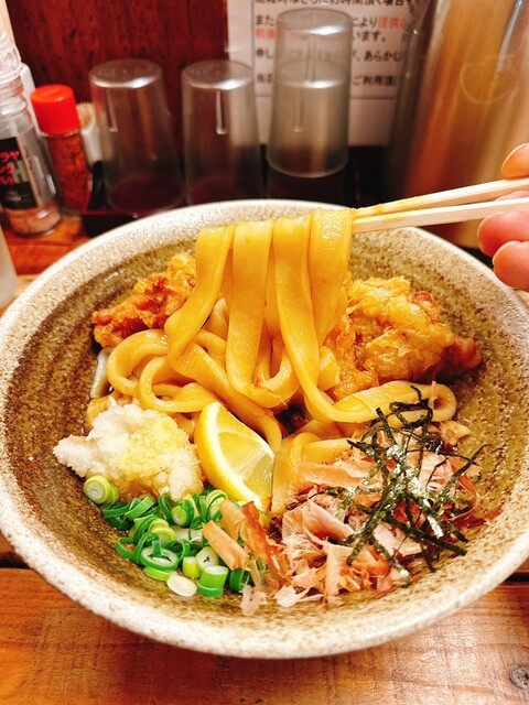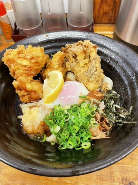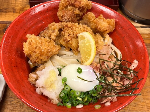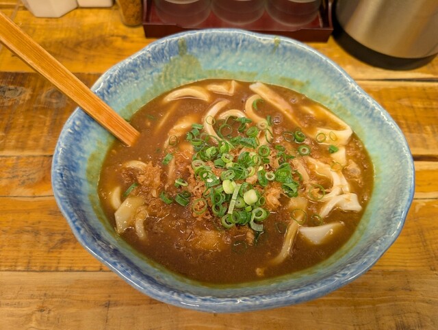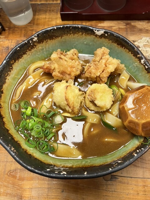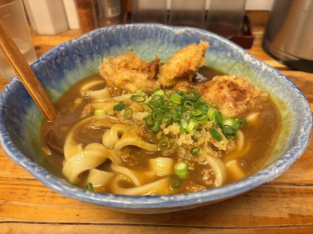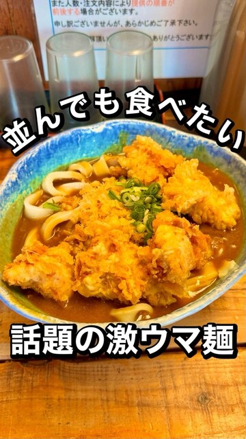 外で5人くらい、15分ほど並んで店内に入りました。とり天カレー3個をいただきました!麺は太くてコシがありました。とり天もサクサクしてボリュームすごいです。次回は麺の量少なくしてトッピング追加しようと思...