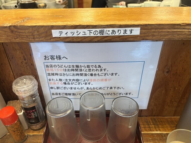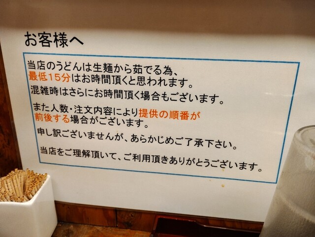 店内にご案内約30分、うどんは15分茹でる