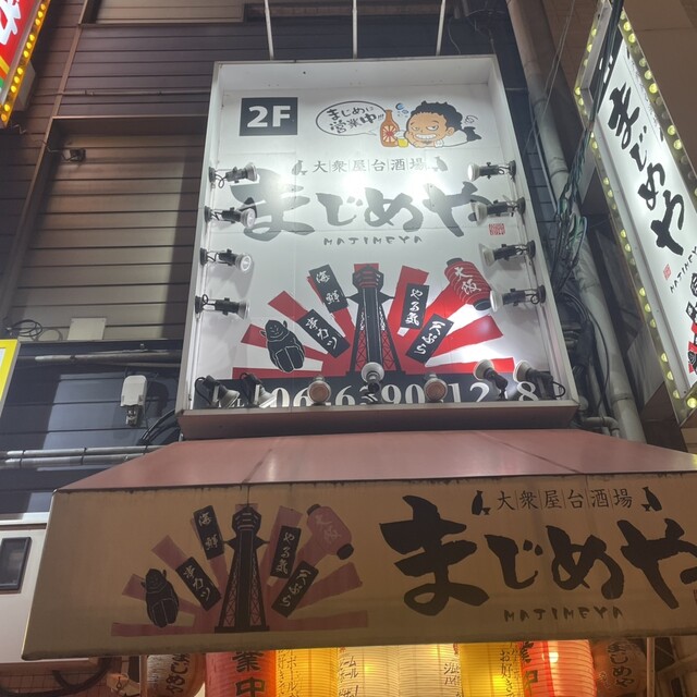 大阪メトロ、西中島南方駅の東側、阪急京都線、南方駅の北側の雑居ビルの2階にあるお店「大衆屋台酒場 まじめや 西中島店」で飲み会でした。