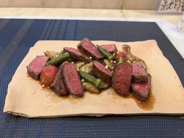 「焼物」は「牛すき焼きのサラダ」です。メチャクチャ、(゚д゚)ウマ...