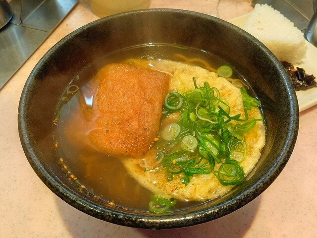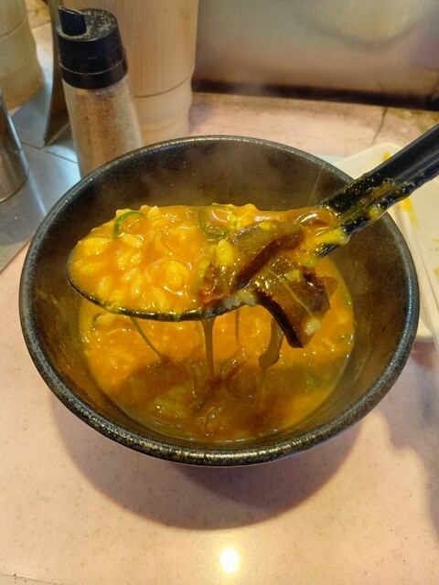 香りとコクの出る天然昆布と本鰹など数種類の食材で塩分控え目の淡口醤油とみりんなどで味付けして塩は入っていません。ダシを湯煎し、熟成(果物で言えば早世から完熟)してます。血圧が気になる方も塩分を気にせずご賞味ください。天然昆布と椎茸で自家製佃煮も販売中。時間帯により裏メニュー出来ないときもあります。カレーも辛さ甘さも調整しますので一言!注文を!!当店は四季に合わせて味を調えてますのでご賞味下さい。※...※地域情報を紹介する番組で取り上げられました。動画は下の「最新情報」からリンクをクリック!!※※