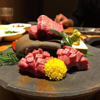 予約の上、19時前に来訪。個室に案内。広々としたスペース。生ビールで喉潤ししつつ、8000円のコースを注文。 上タン塩からスタート。タンなのに霜降りのような脂の乗り具合。ビー... 詳細を見る