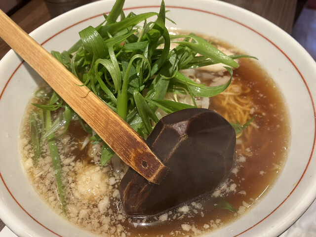 たっぷりの九条ねぎと薄いですが枚数の多いチャーシューのトッピングです。