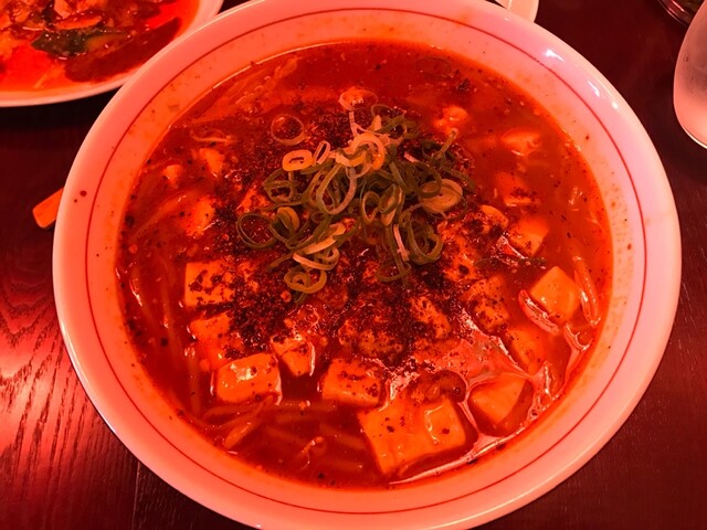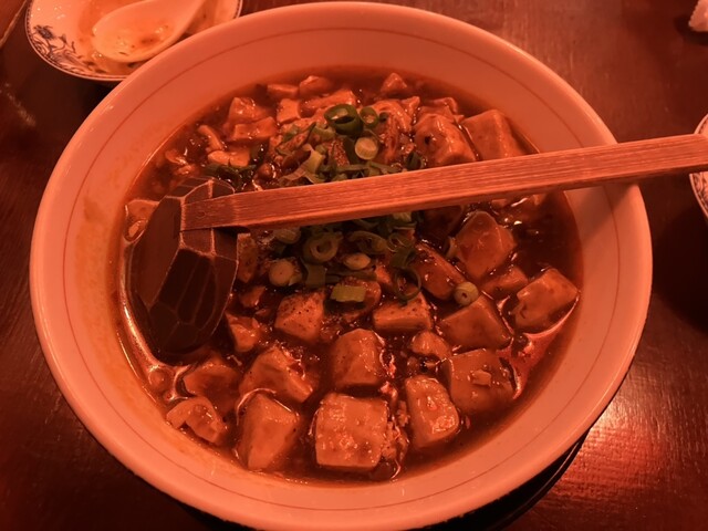 柔茹での細ストレート麺に、麻婆豆腐がかけられたもの。