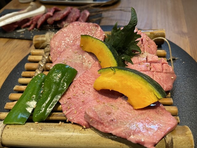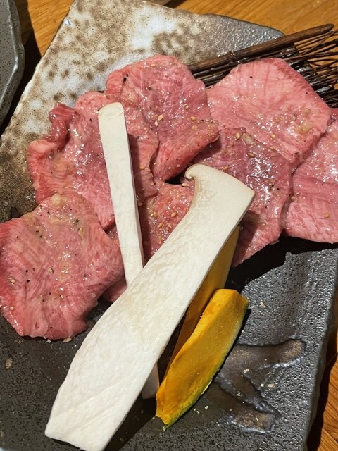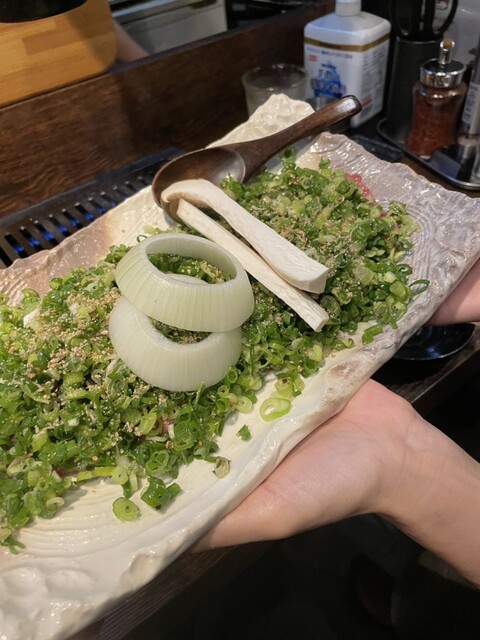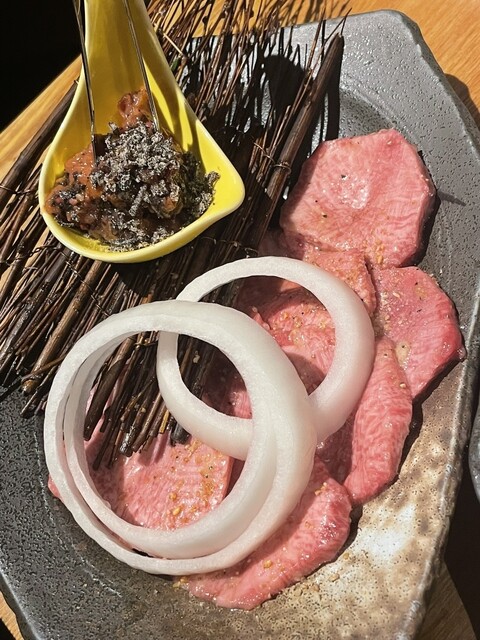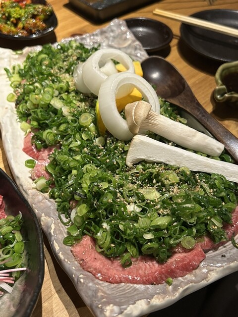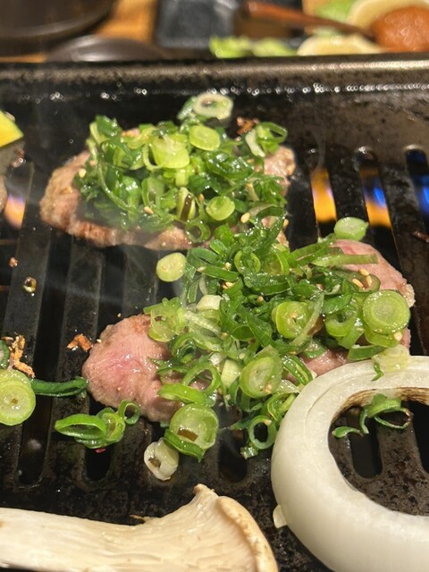 ネギまみれのタン、赤身...