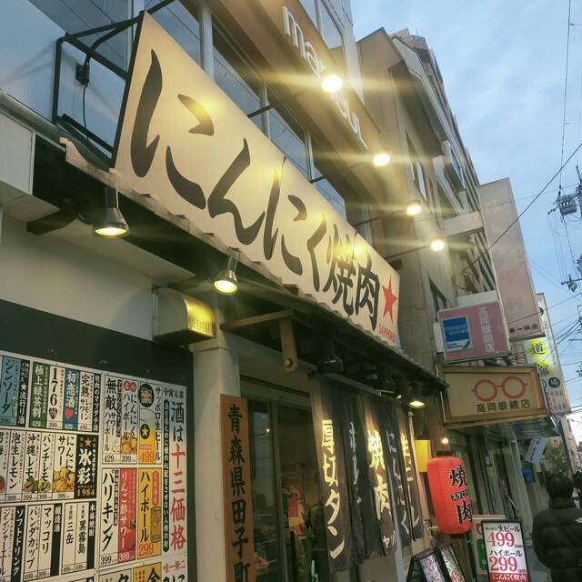 淀川通り沿い"にんにく焼肉"とニンニクを全面に押し出した看板が目印。