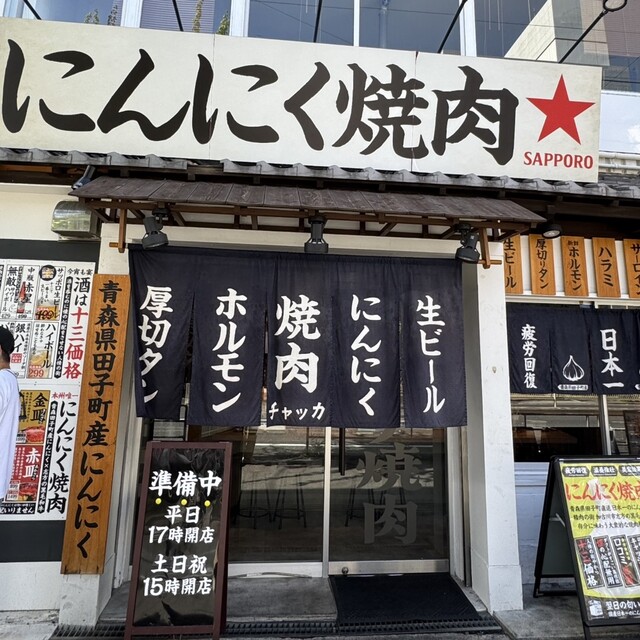 淀川通り沿い"にんにく焼肉"とニンニクを全面に押し出した看板が目印。