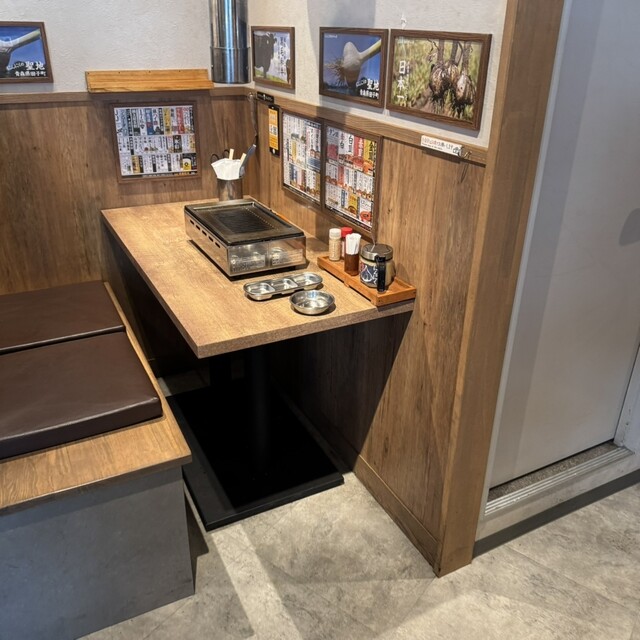 内観はカウンターとテーブルで構成されて、手元には焼肉コンロとダクトを伸ばしたこじんまりとした焼肉店。