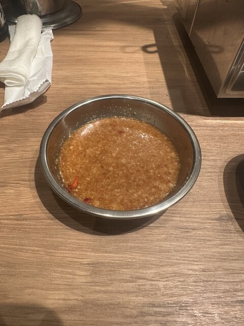 ニンニクたっぷりのタレは、最初に店員さんが作ってくれます。