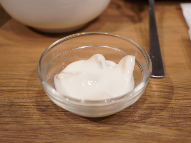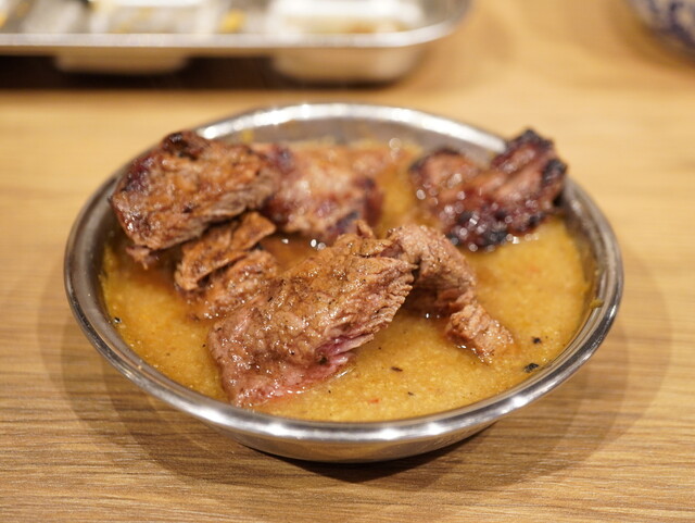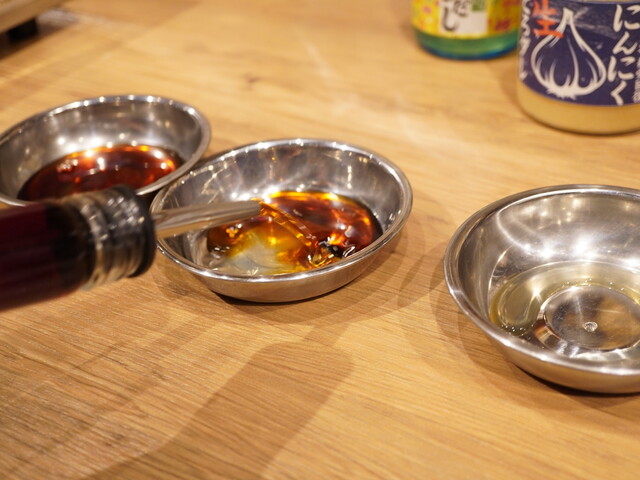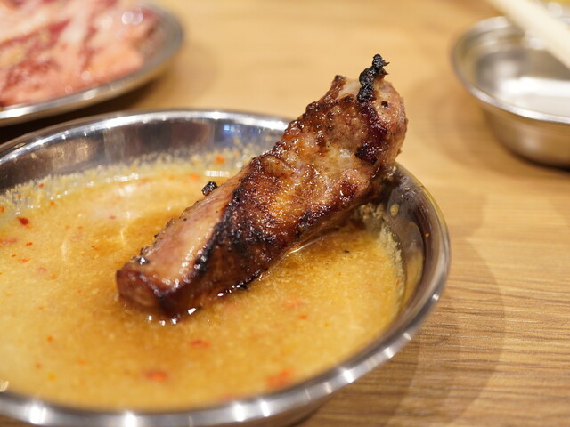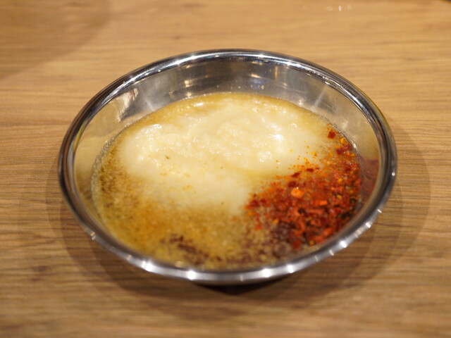 スタッフに作って頂けるが、つけダレ+レモンだし+すりごま+にんにく生どろダレをMIXして完成。