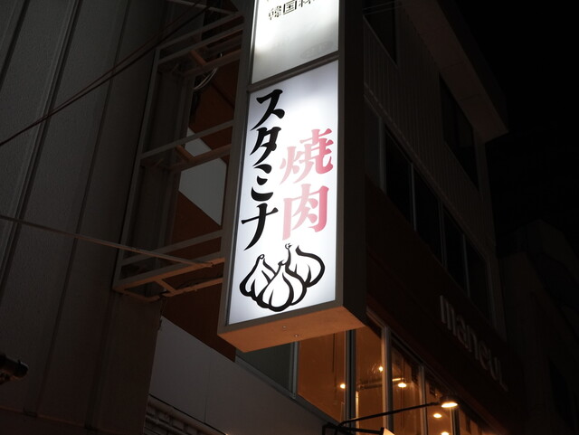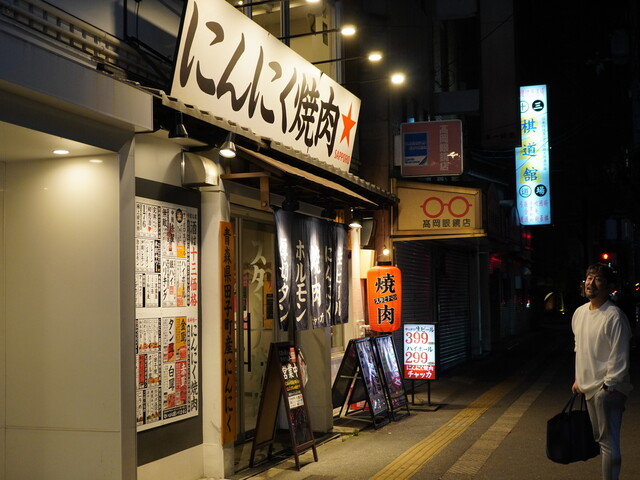 淀川通り沿い"にんにく焼肉"とニンニクを全面に押し出した看板が目印。