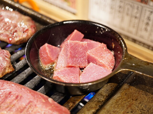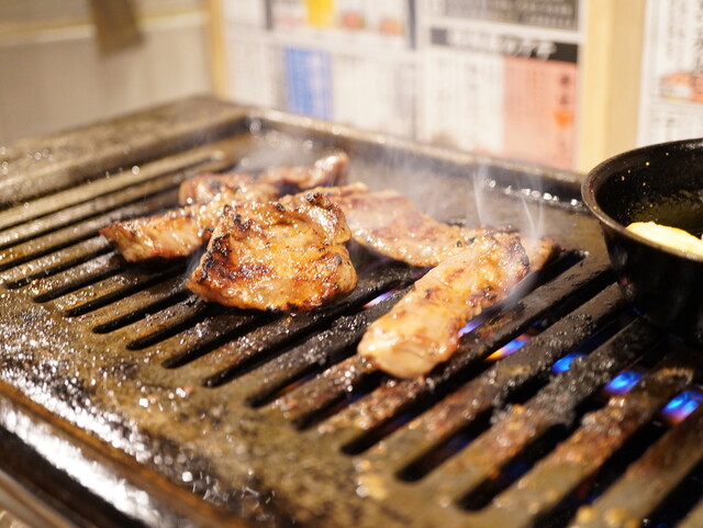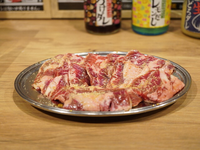 にんにくに浸った生タン皿で味わいを爆発させると、噛みしめる毎に膨らむ旨さのハラミ。