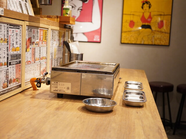 内観はカウンターとテーブルで構成されて、手元には焼肉コンロとダクトを伸ばしたこじんまりとした焼肉店。