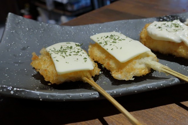 休日の都島駅周辺散策で初訪問。都島駅から都島本通を東へ少し進んだ所。炉端焼おぃとのあった場所に1年半ほど前に開店した串カツ、串焼きの店です。開店時間ちょうどに入店したら ちょっとビックリしてはりましたわ(^^;。土曜日のこんな早い時間に行く人少ないんでしょうね(笑)