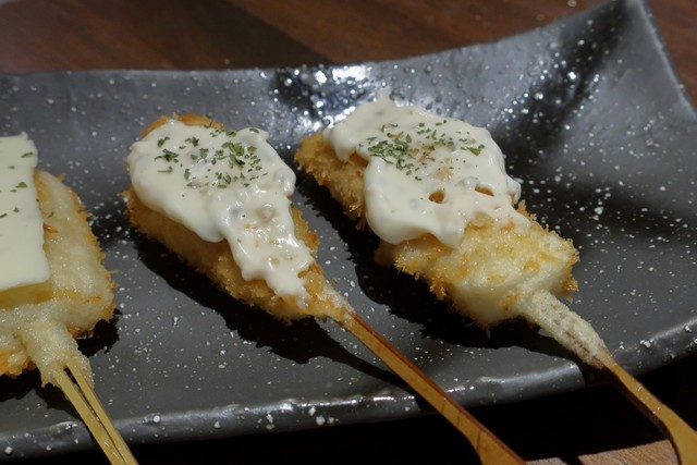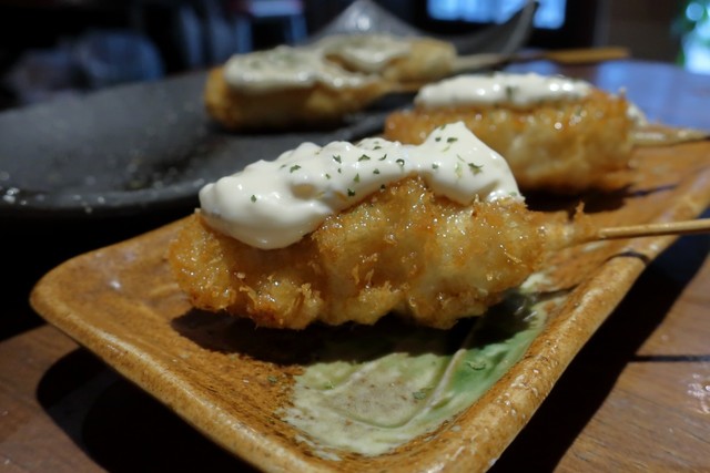 旬の北海道のサンマは、造りも串焼きも美味しかったです(^^)。最初に運ばれてきた串カツのソースから湯気がたってました!。 ちょっと驚いたけど、漬けて食べてみたら よく出汁が効いてて温かく 美味しいソースでしたよ♪♪。ひと口ねぎまは確かに小さいけど旨かったです。39円は安い!!