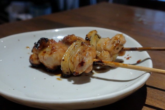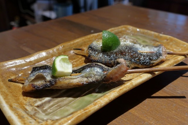 さて。この日頂いたのは、新サンマの造り590円、コーンバター串1本200円、タルタルフィッシュ串1本200円、チューリップ150円、特上ささみ 刻みわさび1本190円、肝レア焼き150円、ひと口ねぎま1本39円、新サンマの串焼き。シメに玉ねぎなど串揚げ色々!!。ハシゴ前提で飲み始めたけど、美味しかったので沢山行ってしまいました(^^;